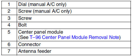 Pull the center panel module toward you, then disengage clip A from the dashboard, and remove the center panel module.