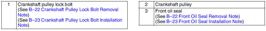 5. Tighten the crankshaft pulley lock bolt in the order shown using the following two steps.