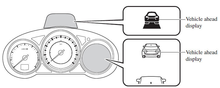 The Distance Recognition Support System (DRSS) operation status is indicated in the active driving display or multi-information display. Regarding malfunctions, check the vehicle conditions or have it inspected by an Authorized Mazda Dealer according to the content of the displayed message.