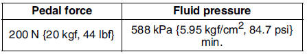 2. Depress the brake pedal with a force of 196 N {20 kgf, 44 lbf}.