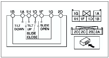2. Inspect for continuity between the sunroof switch terminals using an ohmmeter.